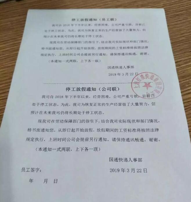 根據(jù)其停工放假通知顯示,國(guó)通為恢復(fù)正常的生產(chǎn)經(jīng)營(yíng)做出了大量努力,但預(yù)計(jì)在未來(lái)仍將長(zhǎng)期處于停工狀態(tài)。結(jié)合實(shí)際現(xiàn)狀和部門情況,從即日起開始放假,上班時(shí)間會(huì)提前另行通知。